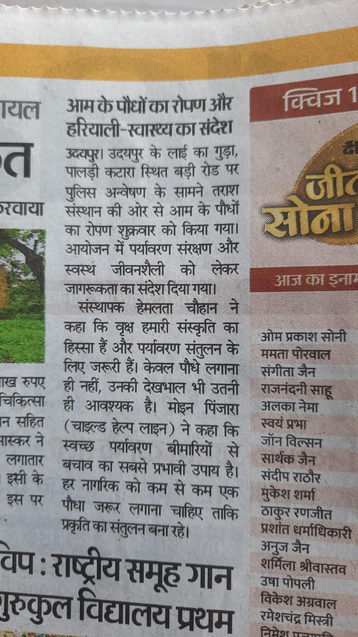 खेमली तहसील के स्कूलों और समुदाय में 500 पौधों का रोपण और वितरण किया गया